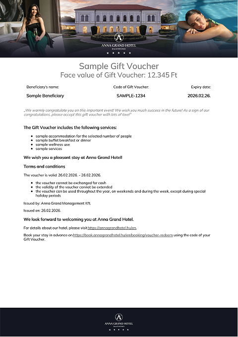 This voucher can be redeemed in Anna Grand Hotel for any booking and services that inculdes at least a one-night stay.